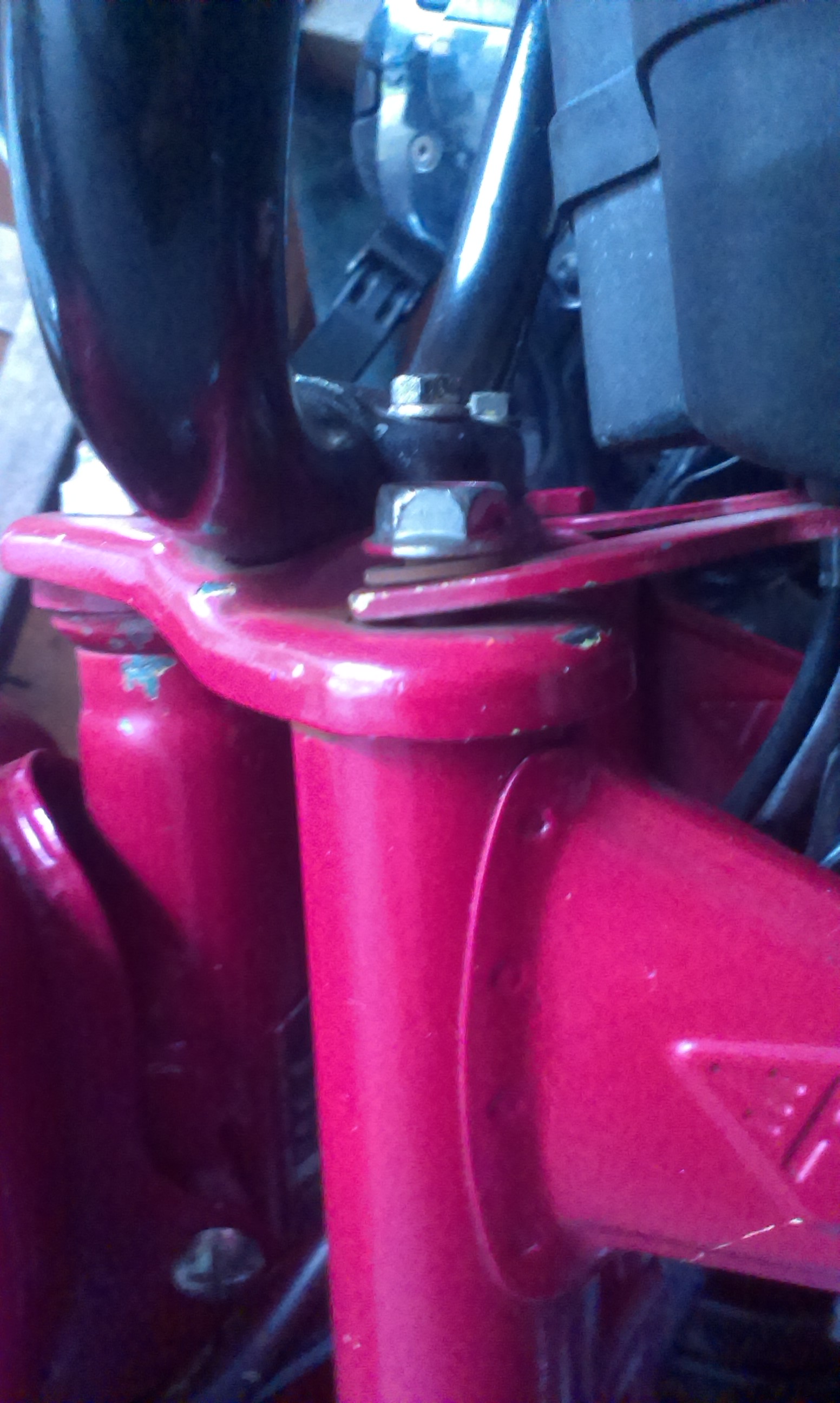 Wenn ich mir das Bild so ansehe, vermute ich dass die Lager schon falsch herum eingebaut sind. Die obere Gabelbrücke scheint schräg nach vorne geneigt zu sein.