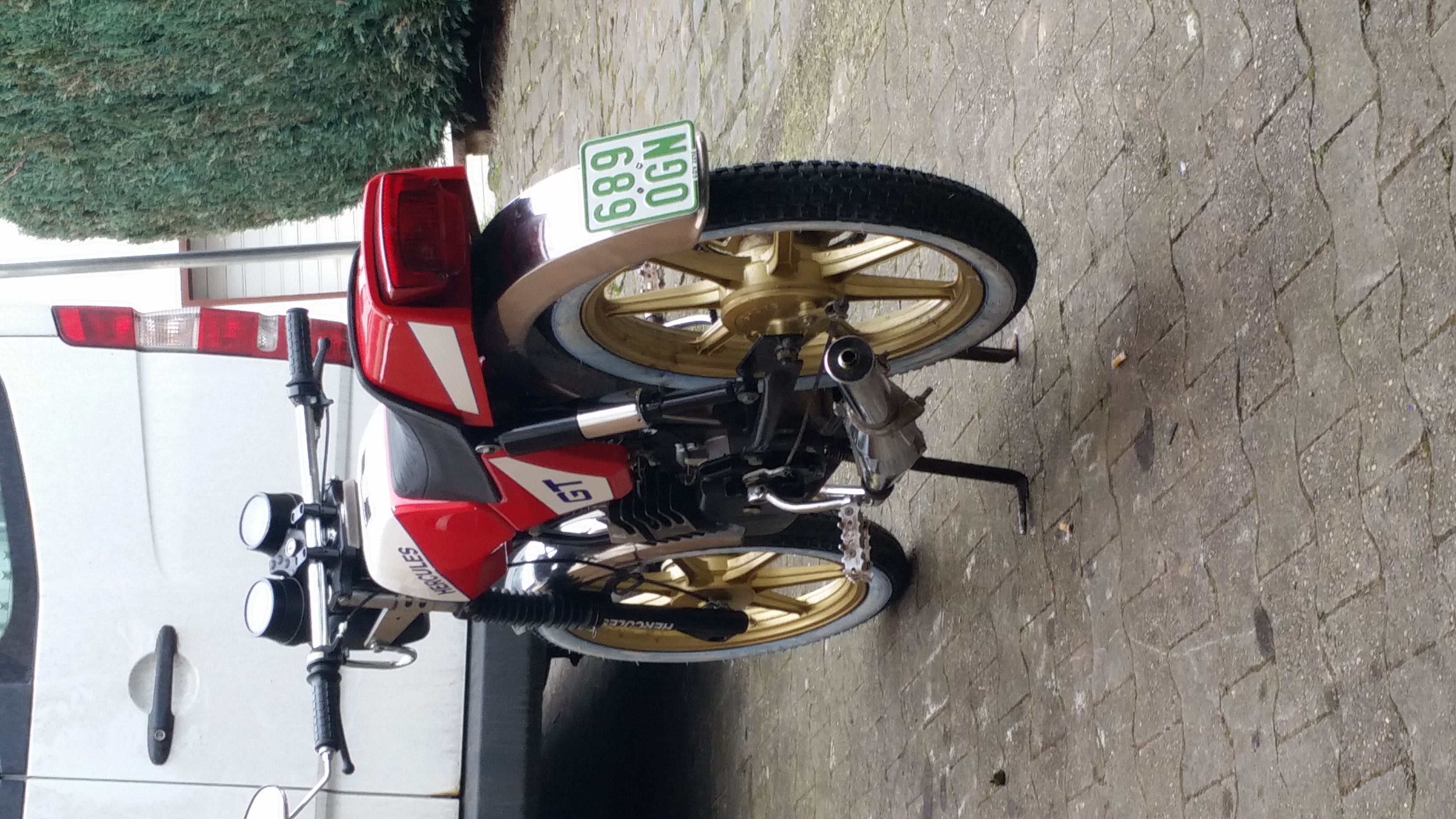Dazu noch ein paar Kleinigkeiten wie Resonanzauspuff für sportliche Optik, großer Chrombügel am Scheinwerfer und ein Spiegel der im Lenker befetigt wird.
