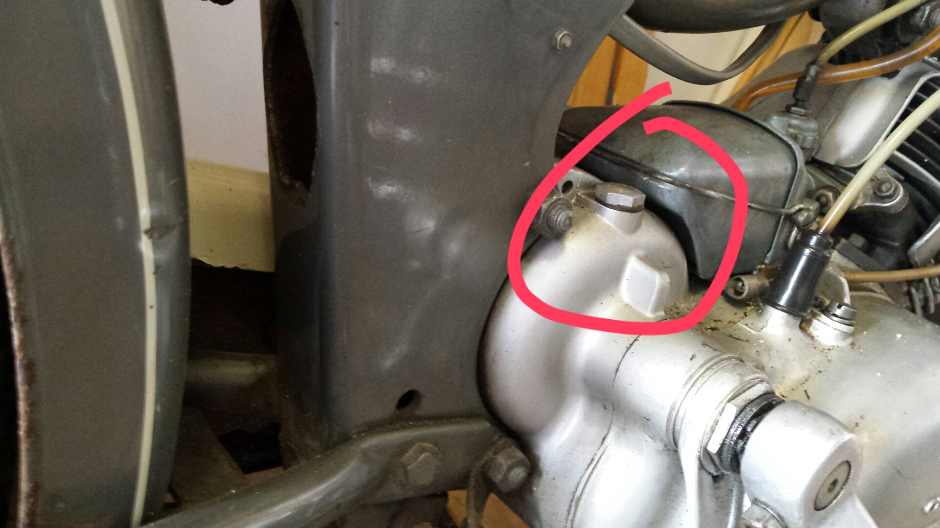 Ich habe ja den Automatic-Motor, da gibt es den kleinen S-Deckel nicht. Der Sachs 50/AMLC hat eine Öleinfüllschraube, eine Ölkontrollschraube und eine Ölablassschraube.