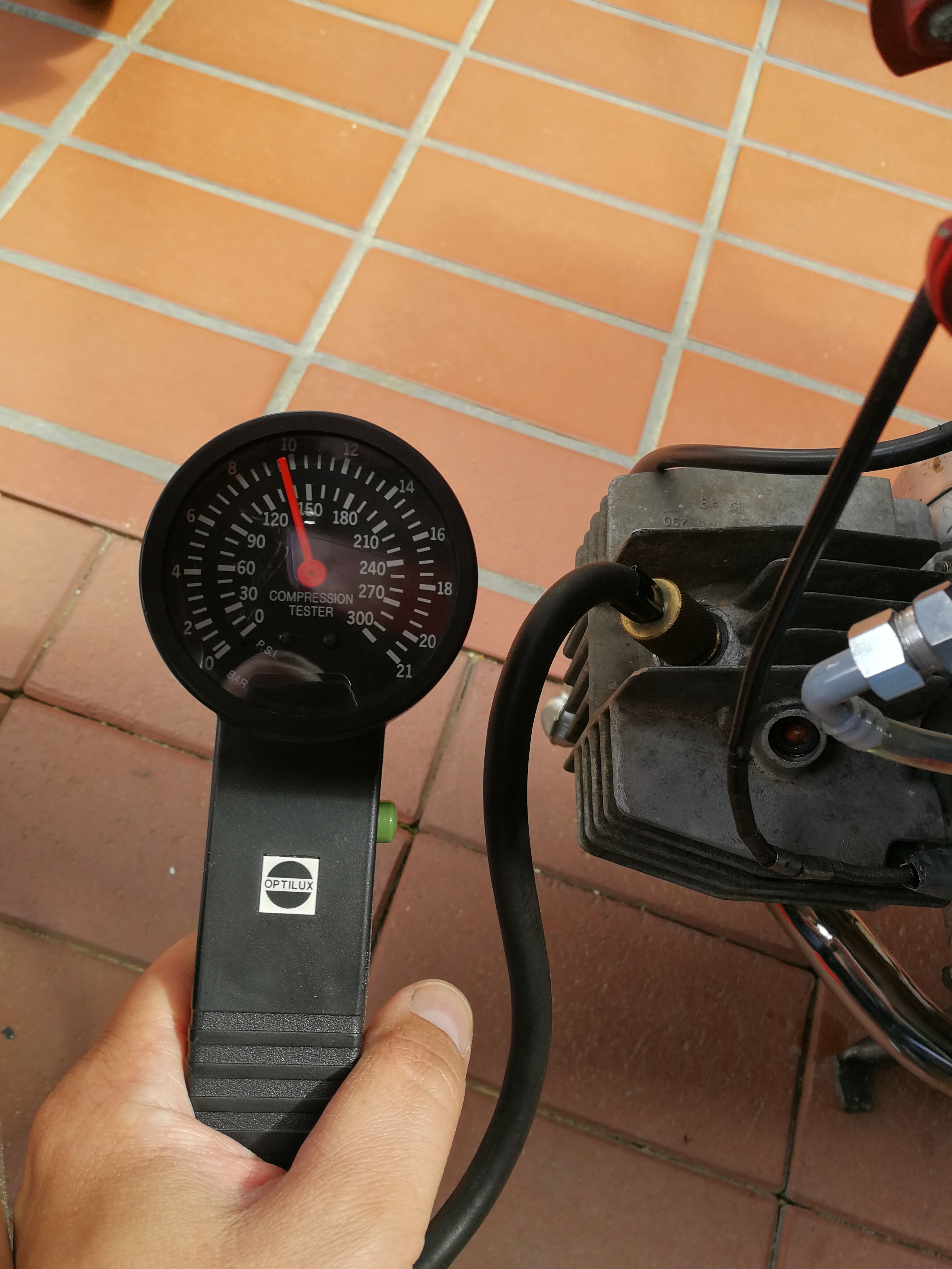 die höhe der kompression könnte auch bedeuten das öl im kurbelsumpf steht, dann müßt aber kerze ölig werden