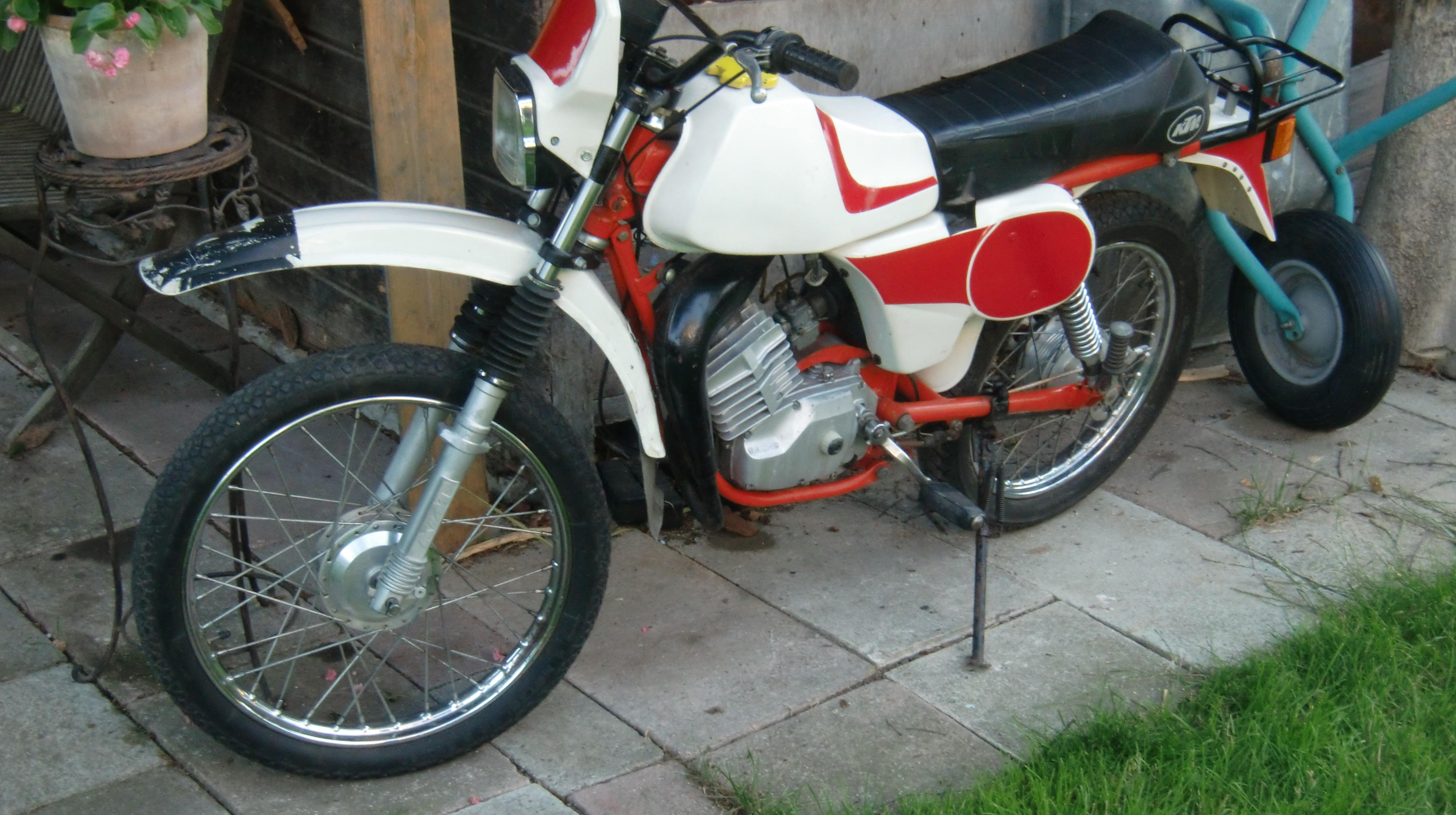 Seitenverkleidung fehlt rechts. Ritzel hinten kleiner ( geht ca 50KM/h) Tachowelle fehlt ,
