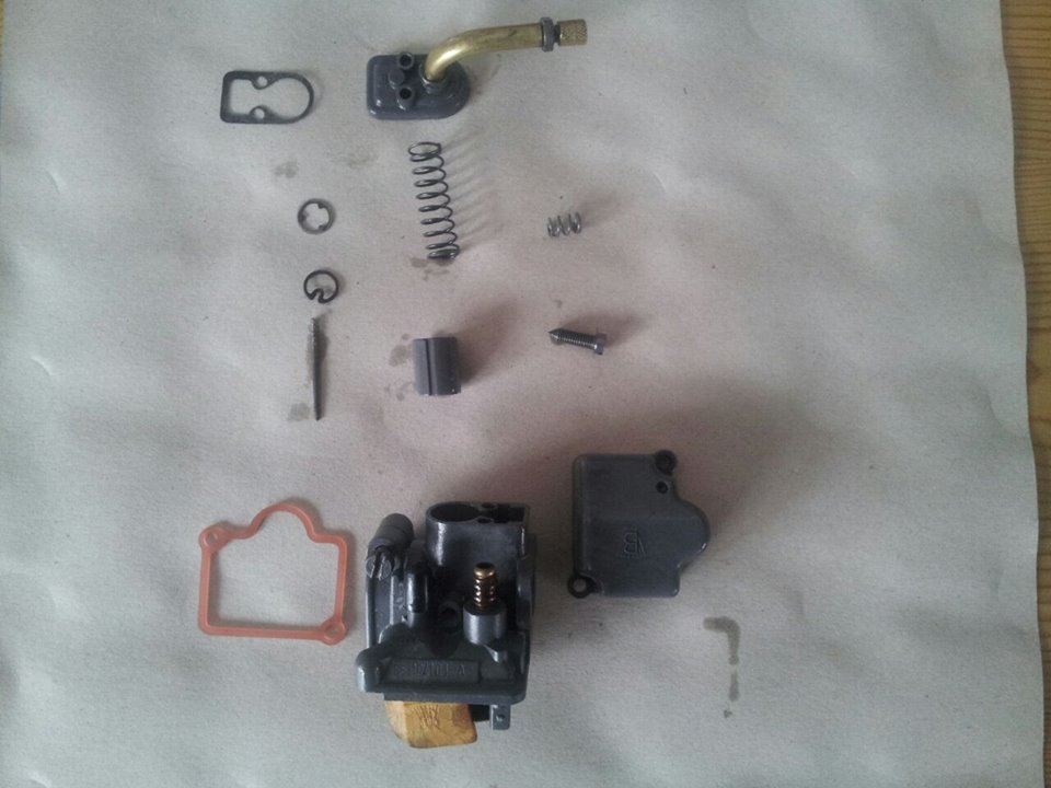 Also ich bins Hippy Motor funkt jetzt nun gehts weiter mit Vergaser habe alle Teile zusammengesucht die ich gefunden habe und auf den ersten Blick fehlen schrauben für Schwimmerkammer und Gasschieberdeckel der Luftfilterkasten fehlt komplett was sonst noch fehlt weiß ich nicht ich hoffe das bild das ich einstelle läßt was erkennen. Schwimmernadel ist drin auf eine antwort was und wo ich die Teile welche fehlen fehlen herbekomme bin ich gespannt.