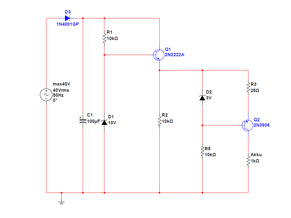 Die Schaltung funktioniert auch soweit, dass bei ausgeschaltetem Motor die Blinker blinken und der Akku (während der Motor läuft) mit einem konstanten Strom geladen wird (so um die 60 mA, da Q2 der Ladergeler Schaltung ein Darlington Transistor ist).